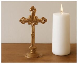 Create a sacred space at home—a small table with a candle, crucifix, or holy image—for reflection.